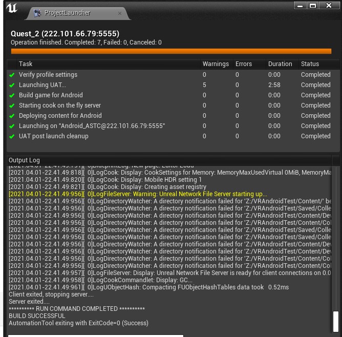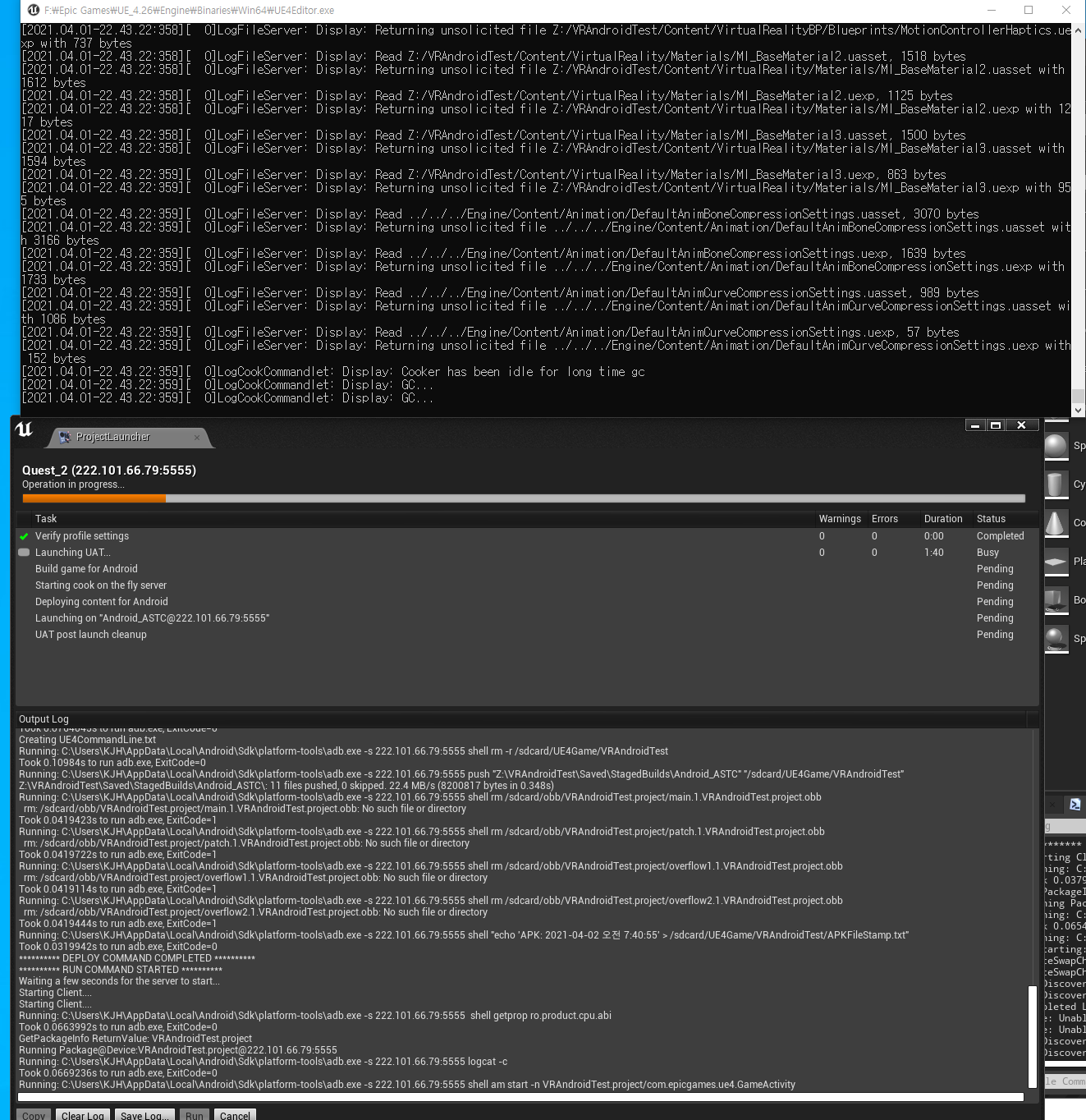 언리얼에서도 무선으로 빌드할 수 있는걸 확인.