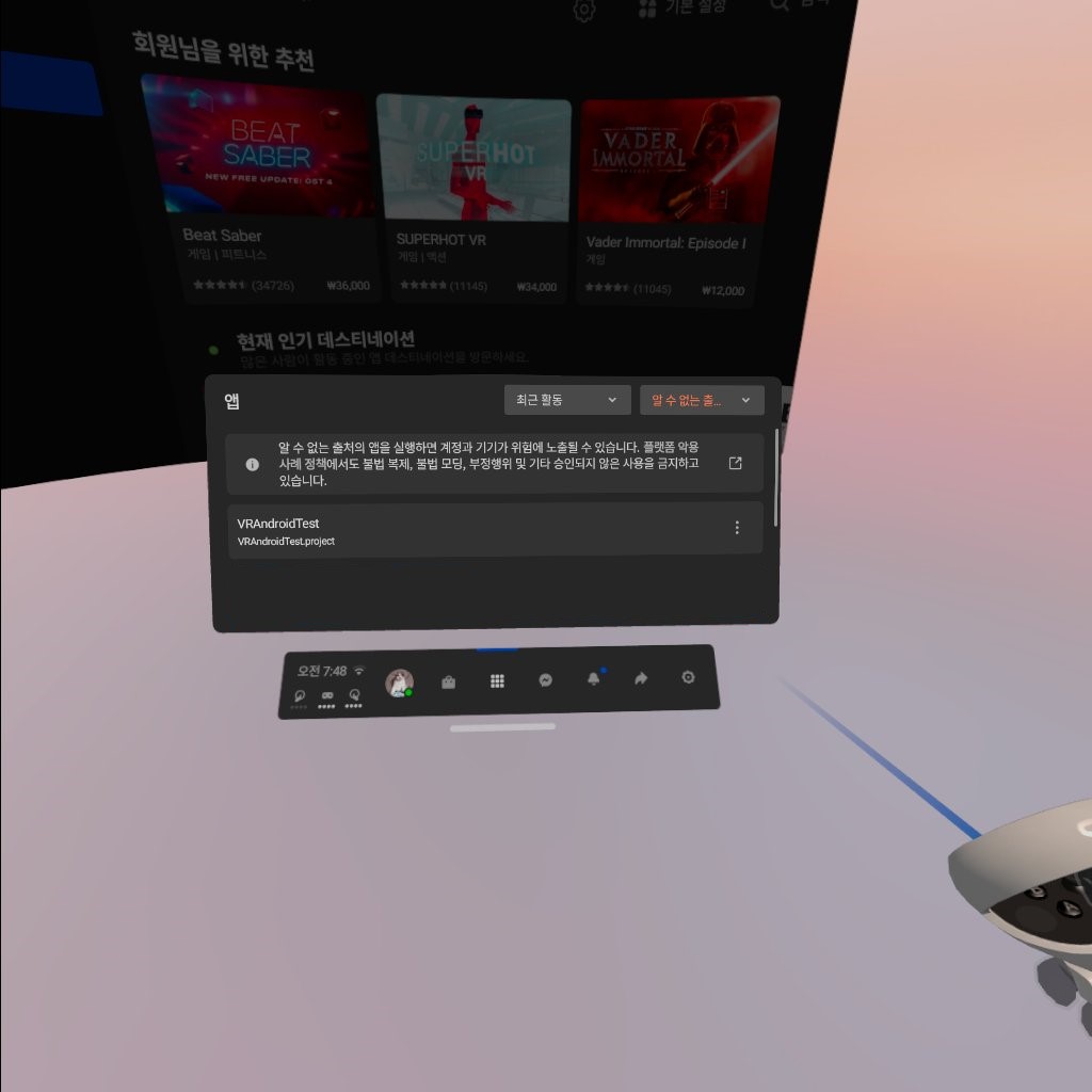 언리얼 없이 독자적으로 실행하고싶다면 패키징해서 사이드퀘스트로 APK를 설치하도록 하자.