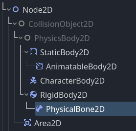 AnimatableBody2D : 스크립트/ 애니메이션으로 움직이는 물체. 플랫폼, 문 등